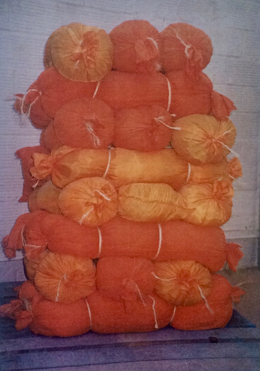 Enveloped Noncomplex, 1998, cloth and wood, 47x471x05cm Light-weight, 1998 O's, 1999, rubber n glue, 10x11x5cm Razing Graces, 1997-1999, wax and hair, 7@18x17x9cm Bloated Paillettes, 1998, cloth, 90x52x76cm Twizzle I & II, 1999, plastic and wood, 9"x14"x72", 23"x8"x42" Heavy-weight, 1998, 72"x72"x114" Other projects View Current View View View View View View Previous Next Back to portfolio